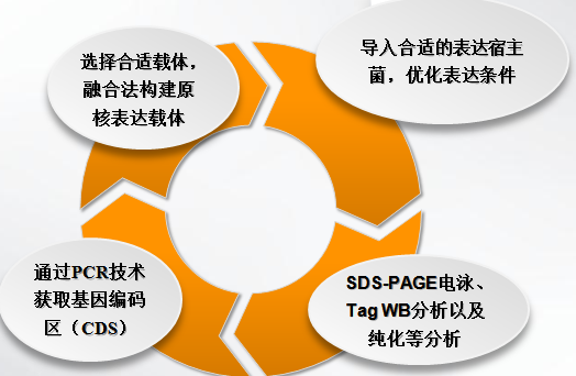 采用大腸桿菌E.coli表達體系是獲取重組蛋白最重要的手段之一,該方法具有操作方便、成本低,而且重組蛋白含量較高等優點。獲取的該蛋白適用于抗體制備、功能分析、細胞實驗以及蛋白相互作用研究等優點。當然,該方法獲取的重組蛋白容易形成包涵體、需要復性以及缺乏蛋白后續修飾等缺點。